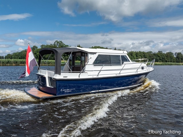 Uiterst fraai vormgegeven Excellent 1000 Touring met een ruimtelijke indeling. Buitenom valt de sportieve lijn van het jacht op in combinatie met de klassieke details zoals de dubbel uitgevoerde r.v.s. zeerailing in combinatie met het r.v.s. anker en r.v.s. ankerbeslag. De Excellent beschikt over comfortabele gangboorden en is middels de 10 r.v.s. bolders in combinatie met de Quick elektrische boeg- en hekschroef gemakkelijk af- en aan te meren. De gezellige open kuip is voorzien van een afsluitbare tent, een rompdeur naar het aangehangen zwemplateau en een prettige bank. Vanuit de open kuip is op gelijkvloerse hoogte de salon bereikbaar middels de vier openslaande deuren. De salon is voorzien van een comfortabele dinette met een ruimte tafel, de overzichtelijke stuurstand en veel bergruimte. In de salon is er middels de royale raampartijen veel natuurlijk licht. Er zijn aan beide zijden 2 schuiframen met hor en een fraai schuifdak. Van binnen is er gekozen voor een moderne ruimtelijke indeling met prachtig notenhout en natuurlijke kleuren. Aan stuurboord is de kombuis gesitueerd met spoelbak, ruime Dometic koelkast en een 3-pits gaskooktoestel met Dometic afzuigsysteem. Aan bakboord is de natte cel gesitueerd met elektrisch toilet, fijne douche en wastafel. Voorin is de eigenaarshut gesitueerd met een vrijstaand Frans bed met veel bergruimte. Voor vragen en/of het maken van een afspraak bent u 7 dagen per week van harte welkom bij Elburg Yachting.