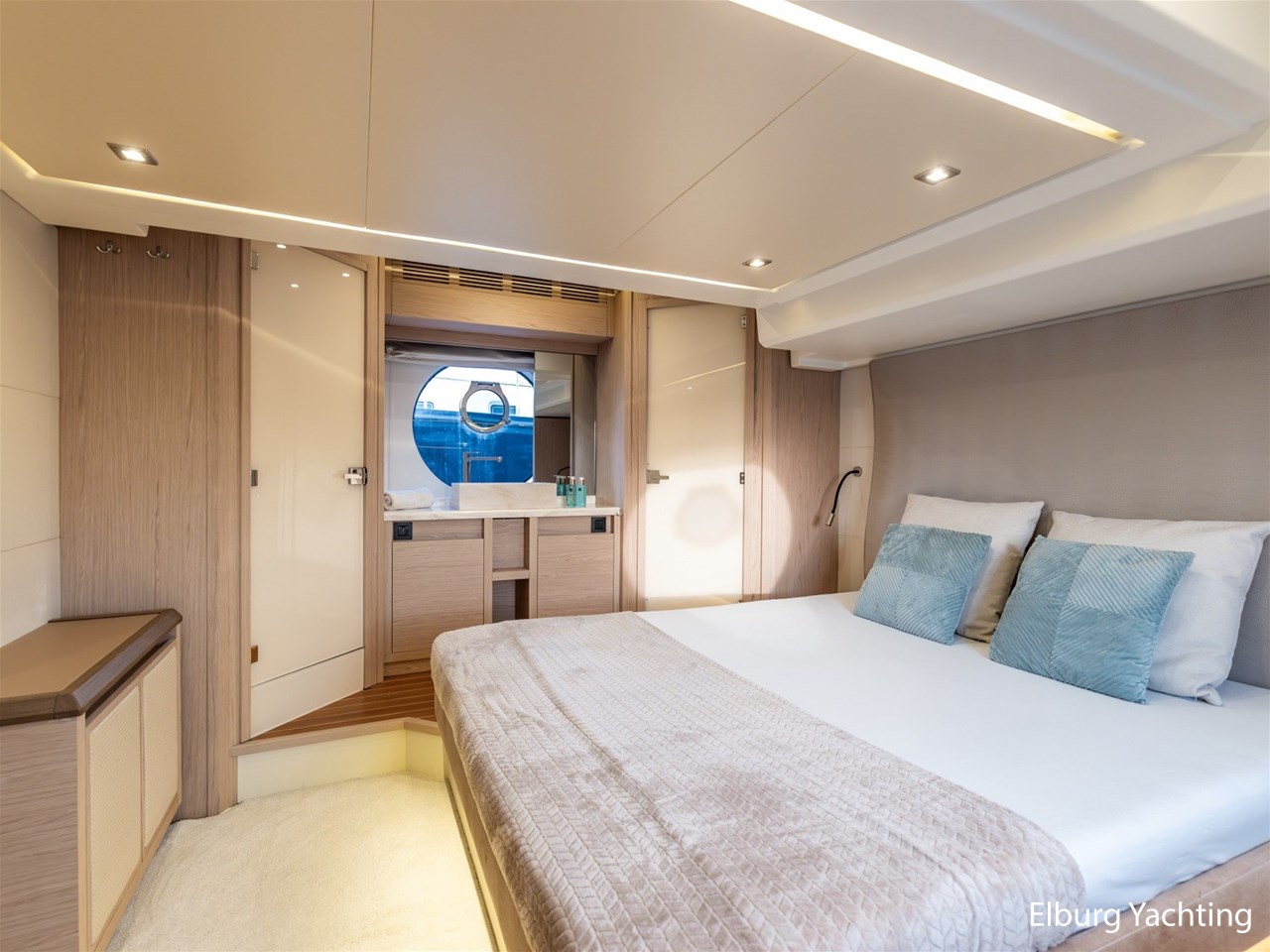 Deze fraaie Beneteau Monte Carlo 6 is een elegant, luxe, comfortabel en vooral sportief jacht en gekozen tot boot van het jaar in de categorie 'Flybridge tot 60ft' bij de 'Motor Boat Awards'. Het jacht is gebouwd in 2018 en is geleverd voor Boat Düsseldorf 2019. Het jacht wordt aangeboden door haar eerste Nederlandse eigenaar sinds haar aankoop in 2021 en is bij ons in Elburg te bezichtigen. In het ontwerp van deze Beneteau Monte Carlo 6 is goed nagedacht over de leefruimte. Het jacht is uitgerust met 3 volwaardige hutten met elk een natte cel, ook beschikt dit jacht over een volwaardige 'Crew-cabin' met eigen natte cel. Het moderne lichte interieur in combinatie met de beige bekleding geeft een ruimtelijk gevoel aan boord. Het jacht wordt voortgestuwd door 2 x 600 pk sterke Cummins Dieselmotoren in combinatie met het Cummins Zeus pod aandrijvingssysteem (middels joystickbediening) met drie stuurstanden door het jacht (1 x stuurstand in de salon + 1 x stuurstand op de Flybridge + 1 x stuurstand in de kuip). Het jacht is voorzien van een royale Flybridge met een T-top welke voorzien is van een schuifdak. Verder wordt dit jacht geleverd met onder andere: geïntegreerde hydraulische gangway, geüpgraded 17,5 KVA generator, onderwaterverlichting, koelkast op de Flybridge, grill op de Flybridge, wijnkoeler, wasmachine/droger, watergekoelde airconditioning 66KBTU door het jacht + watergekoelde airconditioning in de Crew-cabin 4000BTU en is het onderwaterschip in 2025 opnieuw opgebouwd. Voor vragen en/of het maken van een afspraak bent u 7 dagen per week van harte welkom bij Elburg Yachting.