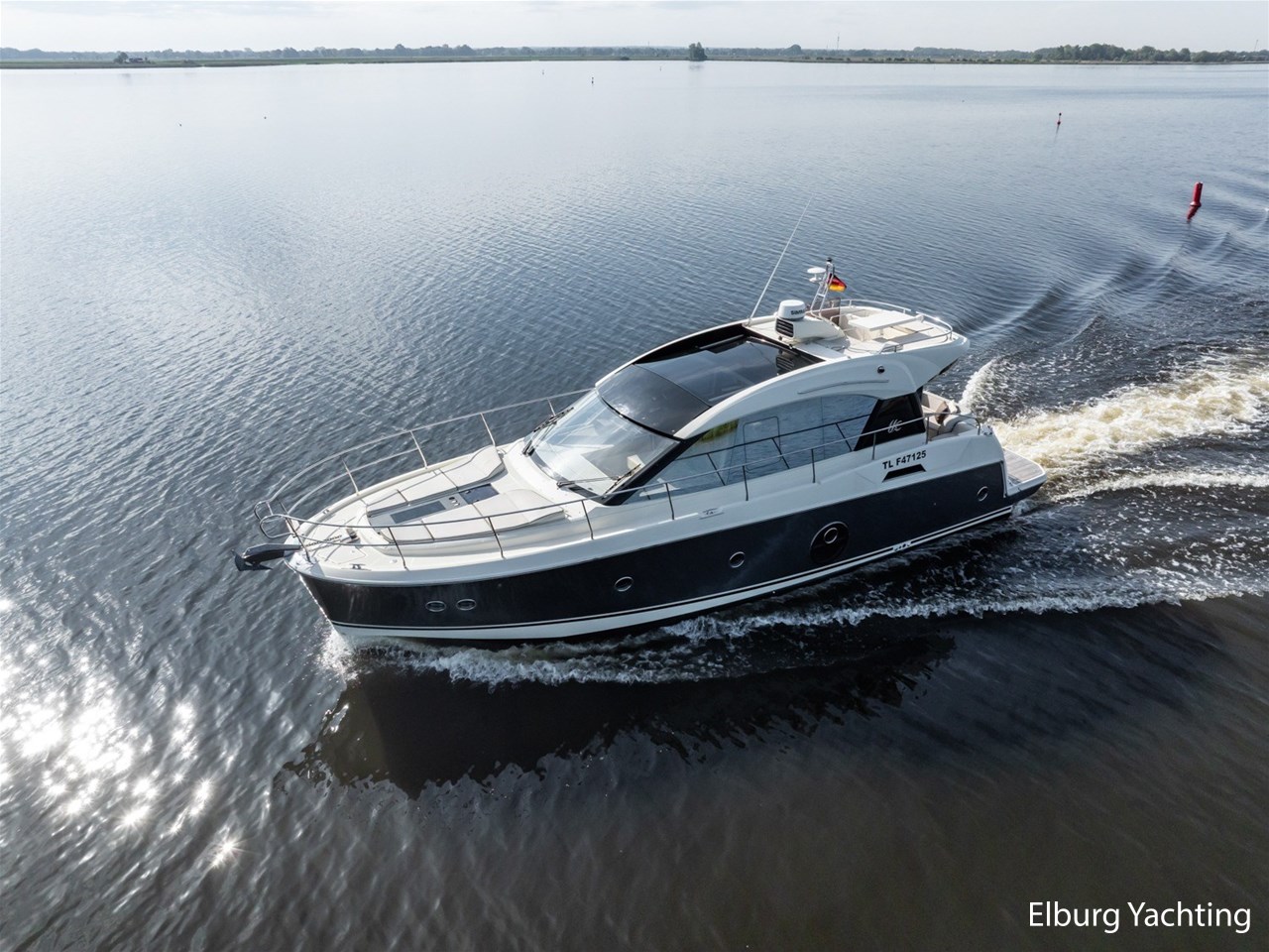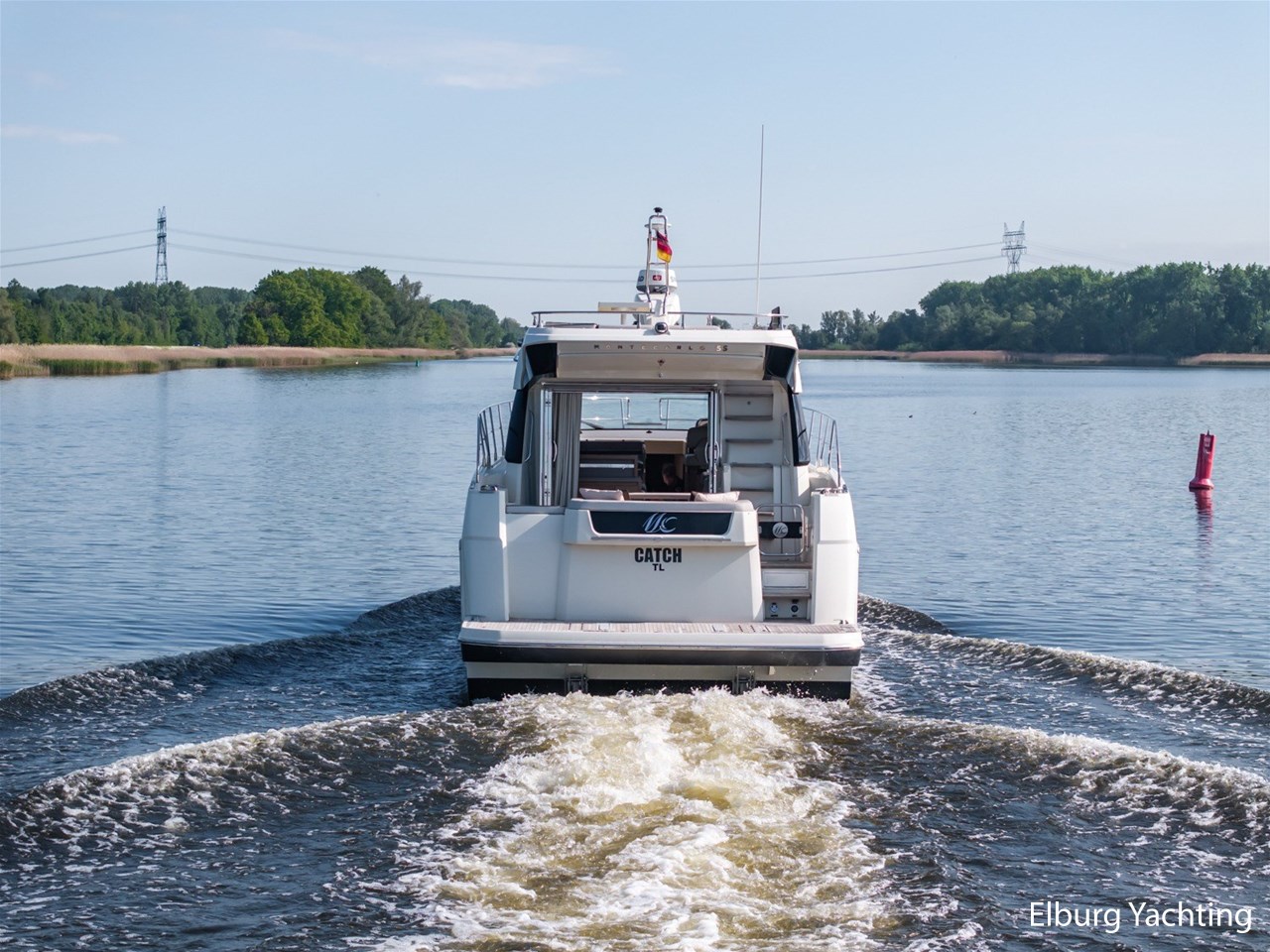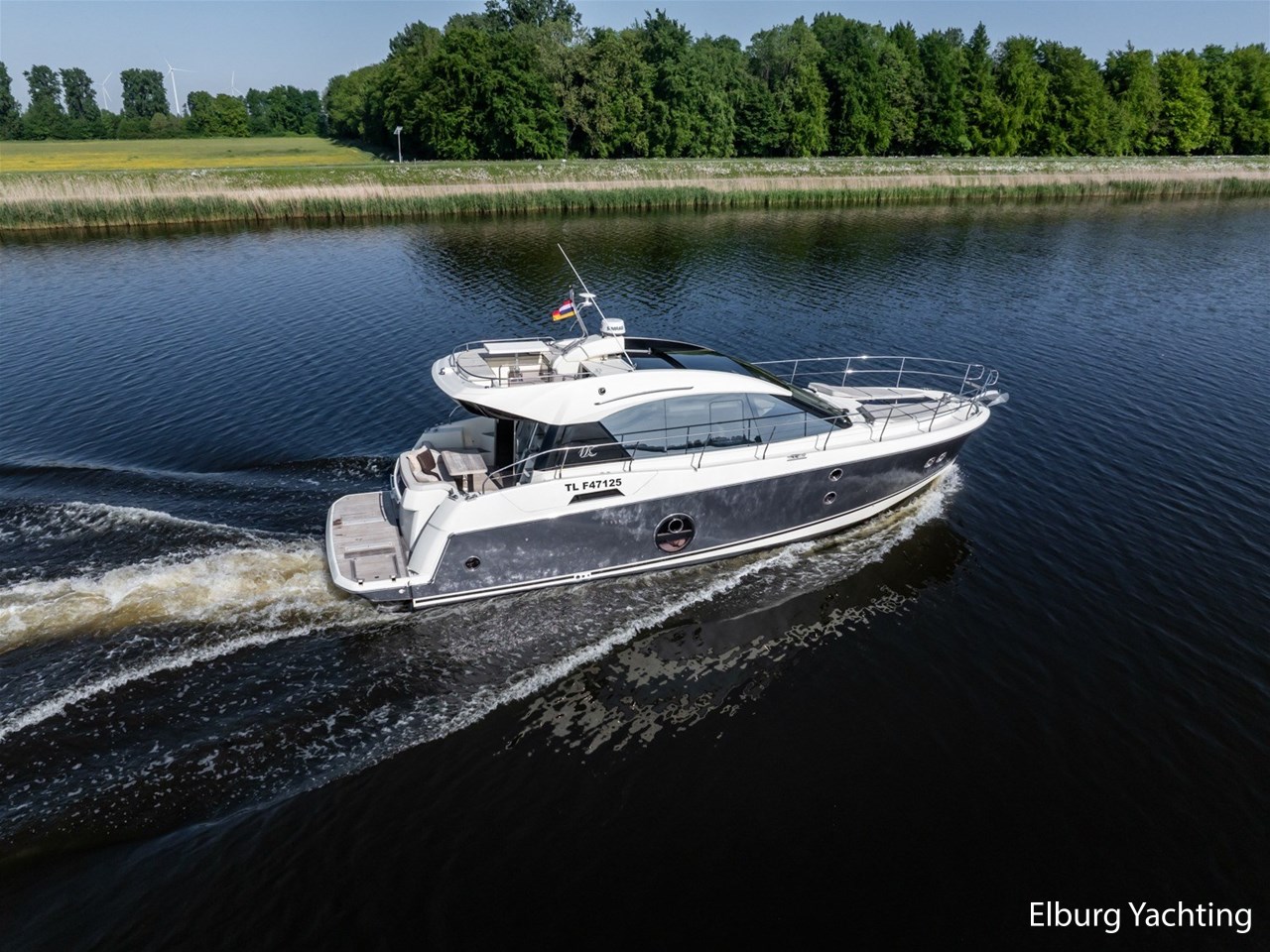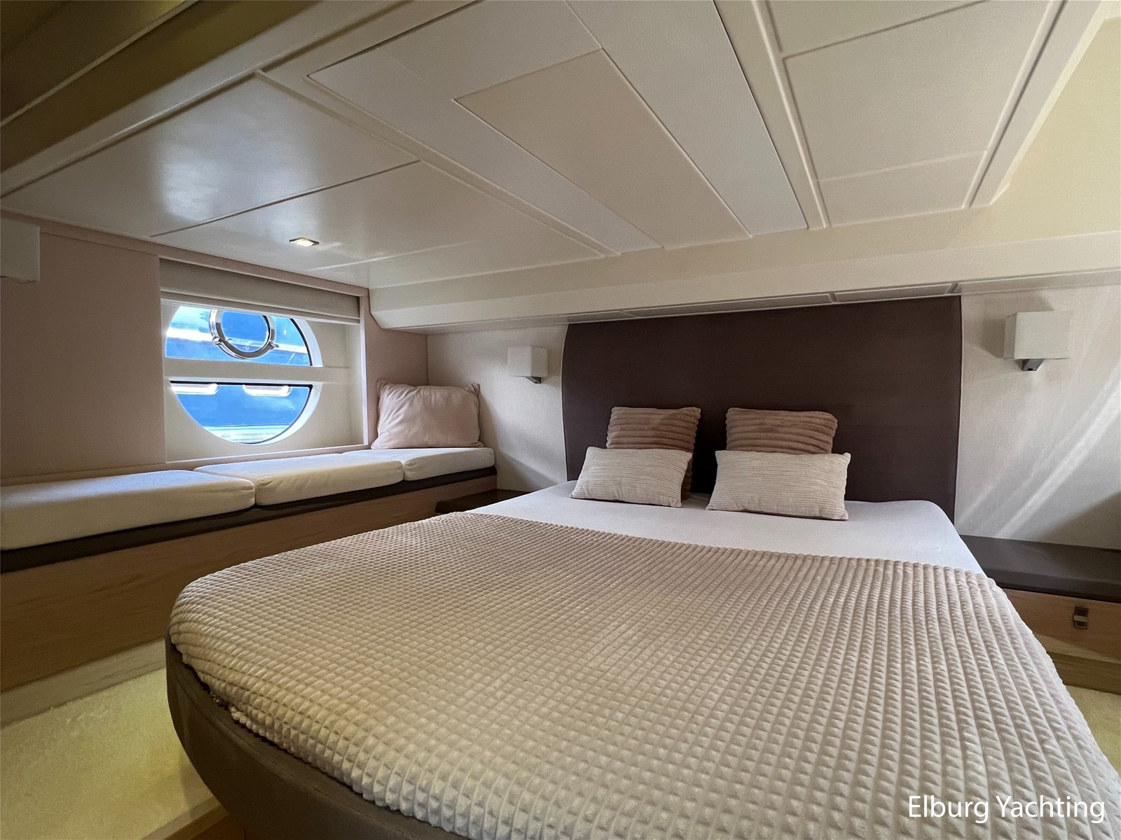 Zeer compleet uitgevoerde Monte Carlo 5S. De 5S-serie onderscheidt zich door stoere en sportieve looks en een hardtop met een buitenlounge op het dak. Vanaf het hydraulisch beweegbare zwemplateau wordt de open kuip betreden. De kuip heeft een geïntegreerde bank met bijbehorende kussens en vaste tafel. Aan SB zijde in de kuip bevindt zich de toegang tot de extra hut (crew cabin) in het achterschip, deze hut is tevens te gebruiken als extra opbergruimte. Via de open kuip stap je eenvoudig op naar het gangboord met goede houvast rondom voor een veilige loop over het dek. Op het voordek zijn twee geïntegreerde klapbare zonnebedden aanwezig. Via een geïntegreerde trap vanuit de kuip betreed je de buitenlounge op het dak. Deze buitenlounge heeft een in hoogte verstelbare tafel waarmee er ook een groot zonnebed gecreëerd kan worden. De salon en de kuip laten zich verbinden door drie grote glazen wegklapbare deuren. De kombuis is gesitueerd bij de ingang van de salon. Door het openen van de salondeuren wordt de kombuis volledig betrokken bij de kuip. De salon gecombineerd met de stuurstand bevindt zich op dekniveau. Via de de grote ramen rondom (getint) is er goed zicht en komt er veel licht binnen. Het buitengevoel naar binnen brengen kan door het openen van het grote elektrisch bedienbare schuifdak en twee zijruiten. Benedendeks bevinden zich drie hutten voor in totaal zes personen. De 2-persoons eigenaarshut bevindt zich midscheeps over de volledige breedte van het schip. Deze hut is voorzien van eigen sanitair en-suite. Aan stuurboordzijde bevindt zich een 1 x 2 persoons stapelbed en in de voorhut een 2-persoons Frans bed. Centraal is er een tweede badkamer met douche en toilet gesitueerd. Deze Monte Carlo 5S is verder voorzien van: achteruitkijk camera via plotterscherm, elektrisch bedienbare gangway, kuip afsluitbaar met deur naar zwemplateau, TV op lift in salon, Volvo ship/motormanagement display bij stuurstand, Fusion audiosysteem, trimtabs, Yachtcontroller afstandsbediening om te manoeuvreren middels de IPS aandrijving + boegschroef.