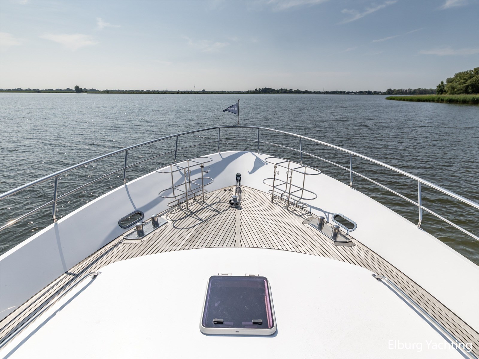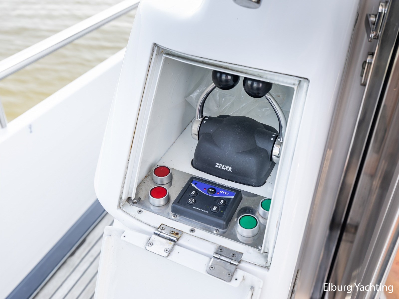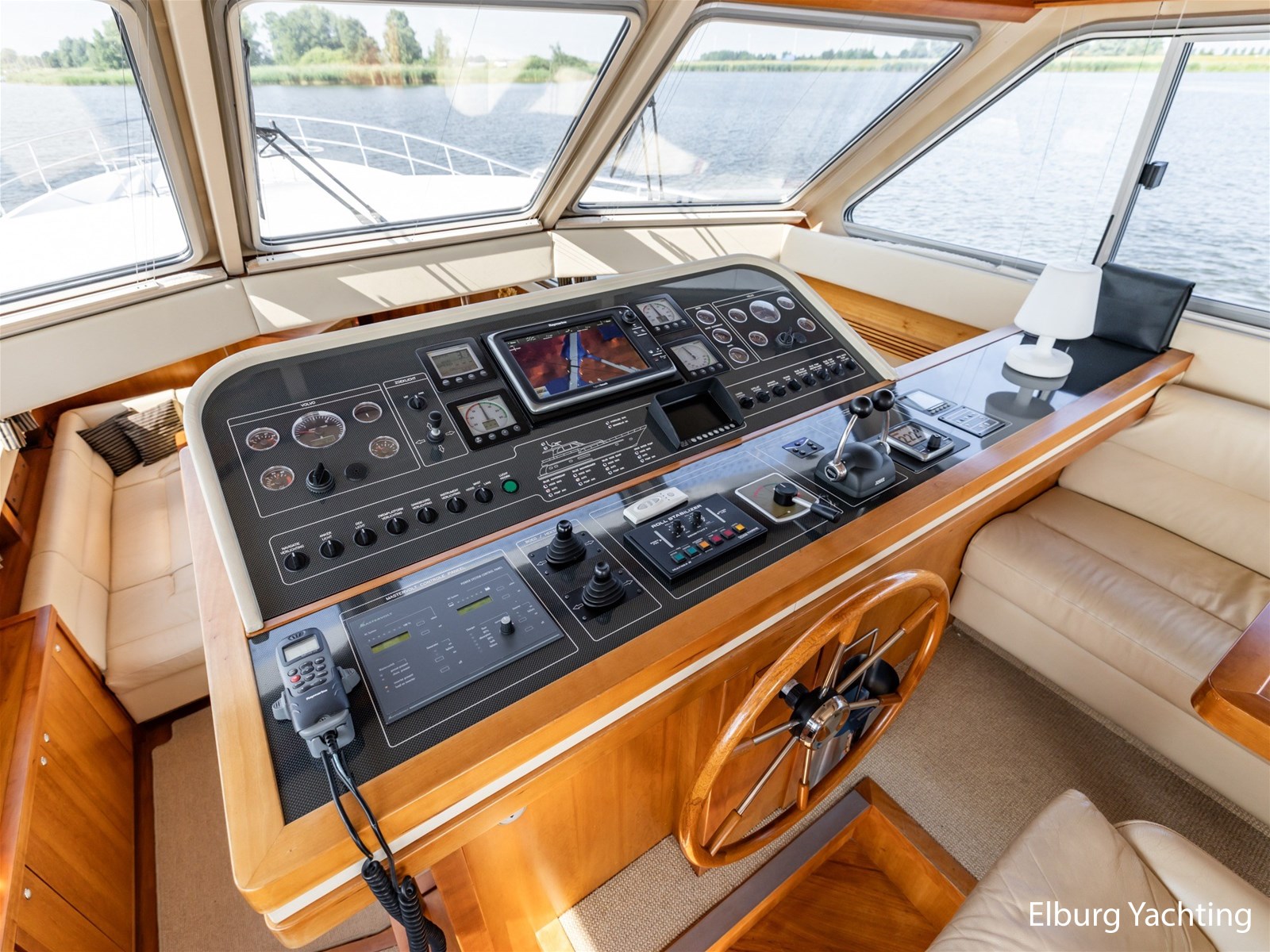 De stuurhut is bovendien zeer compleet uitgerust: onder andere met Autopilot, radar, kaartplotter, camerasysteem, elektrisch zoeklicht, boeg- en hekschroef met afstandsbediening, ruitenwissers met intervalstand, marifoon en andere accessoires. Alles is aanwezig voor ontspannen én veilig varen, ongeacht het vaargebied.