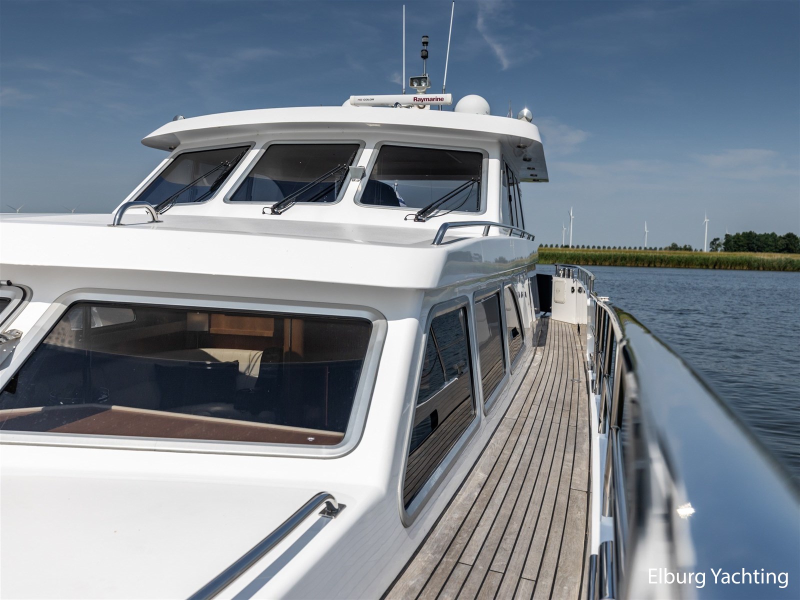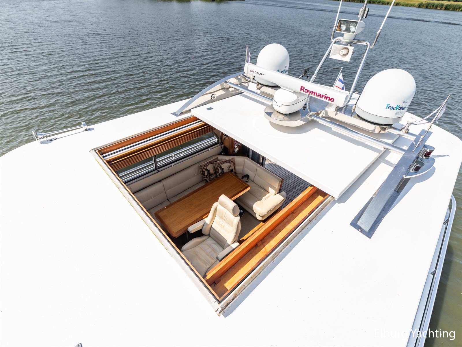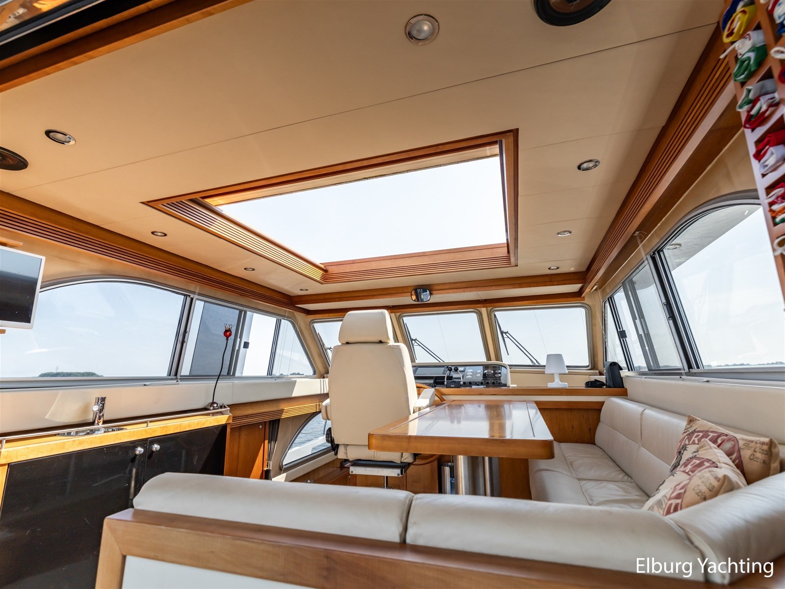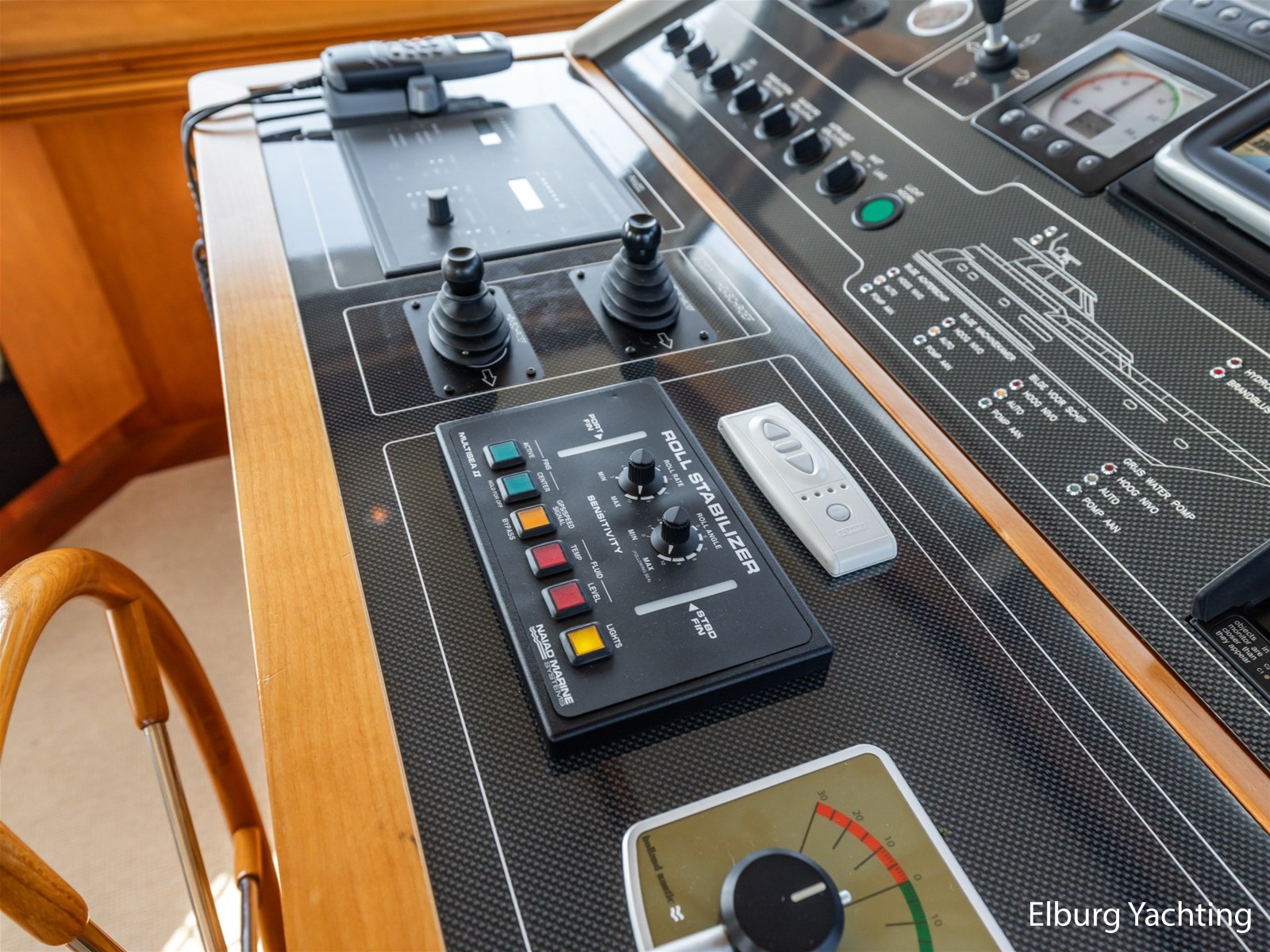 De stuurhut is bovendien zeer compleet uitgerust: onder andere met Autopilot, radar, kaartplotter, camerasysteem, elektrisch zoeklicht, boeg- en hekschroef met afstandsbediening, ruitenwissers met intervalstand, marifoon en andere accessoires. Alles is aanwezig voor ontspannen én veilig varen, ongeacht het vaargebied.