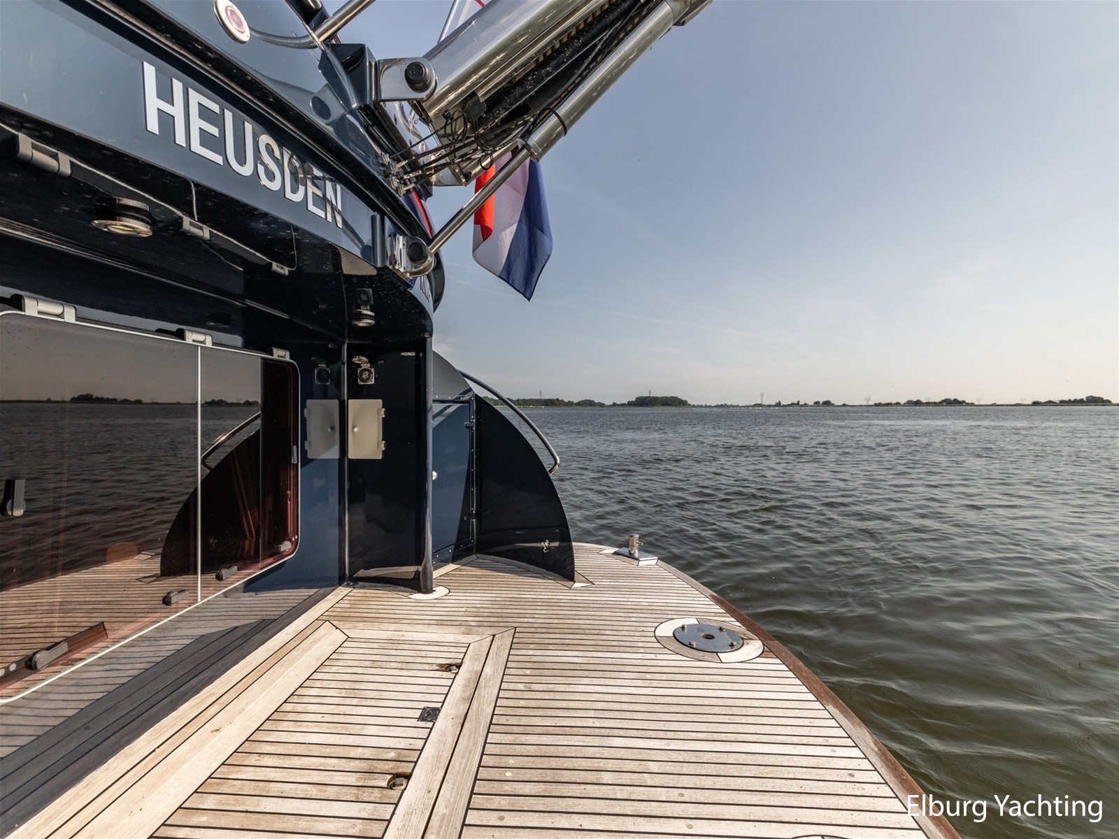 Ook buitenom is het comfort volledig doorgevoerd. Het schip beschikt over een teakdek rondom en een groot zwemplateau met geïntegreerde gangway en verlichting. Een luie trap vanaf het achterdek maakt de toegang tot het zwemplateau extra comfortabel.